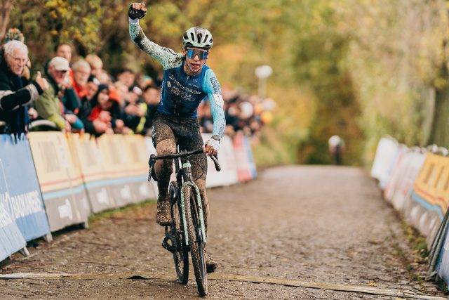 Cas Timmermans wint de Koppenbergcross voor junioren.